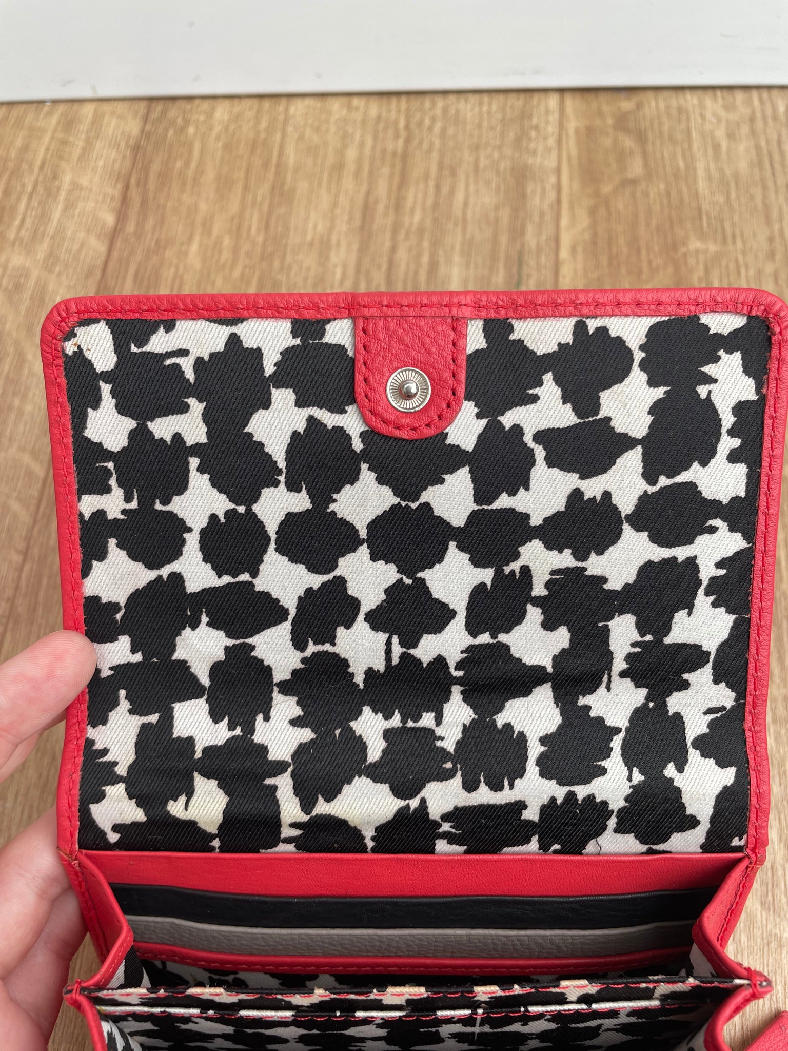This lovely coral leather purse from Betty Jackson is brand new with tags and features: