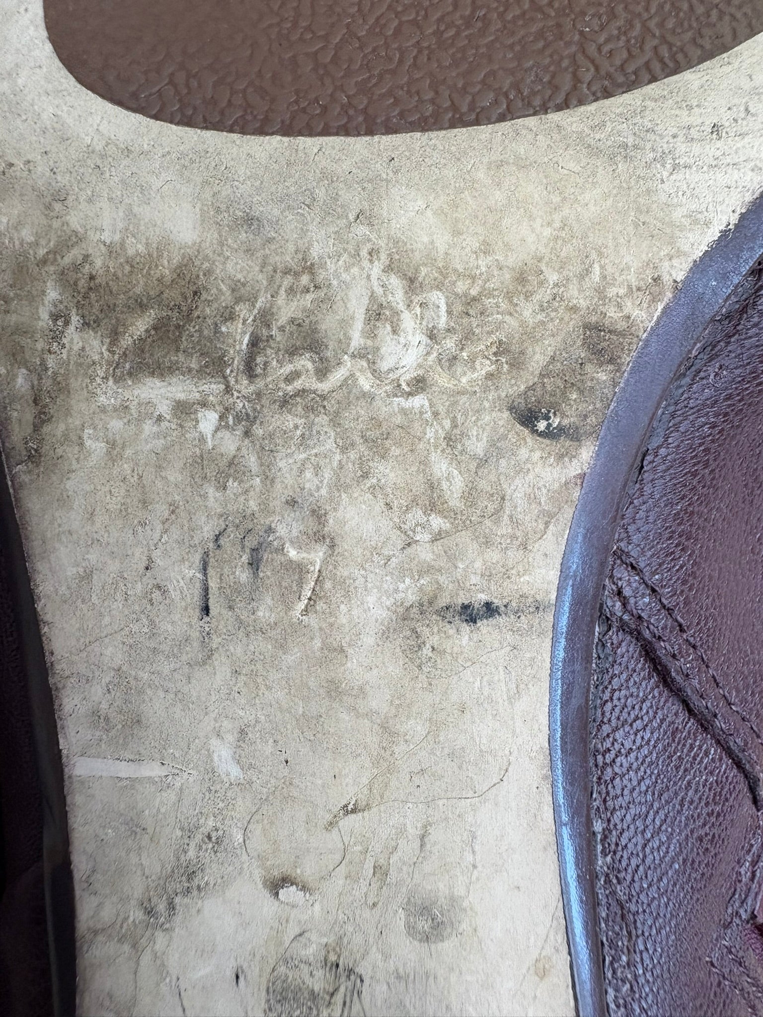 - Brown leather with a ruched leather detail and a brown leather bow around the top of the boot