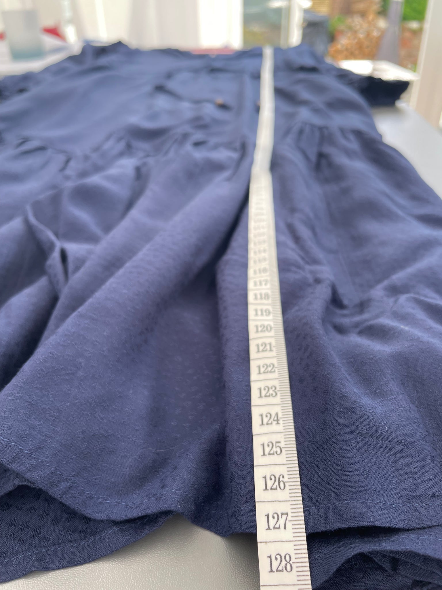 - Key measurements across the front: Bust: 46cm Length: 127cm
