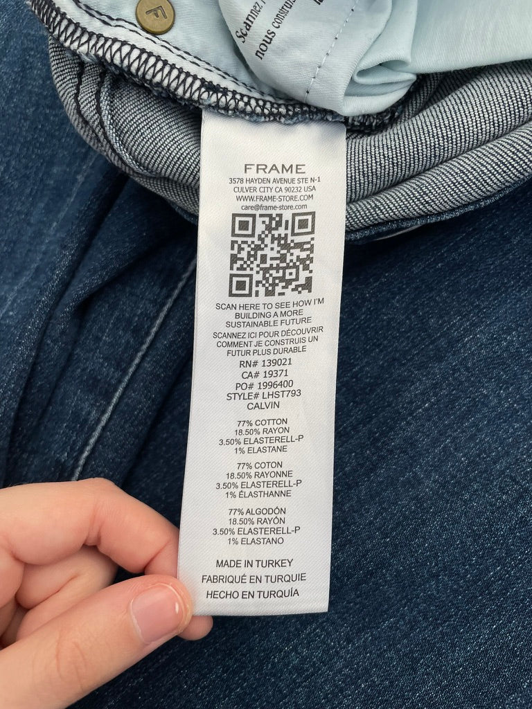 These mid denim blue Le High Straight jeans from Frame are in excellent preloved condition and feature: