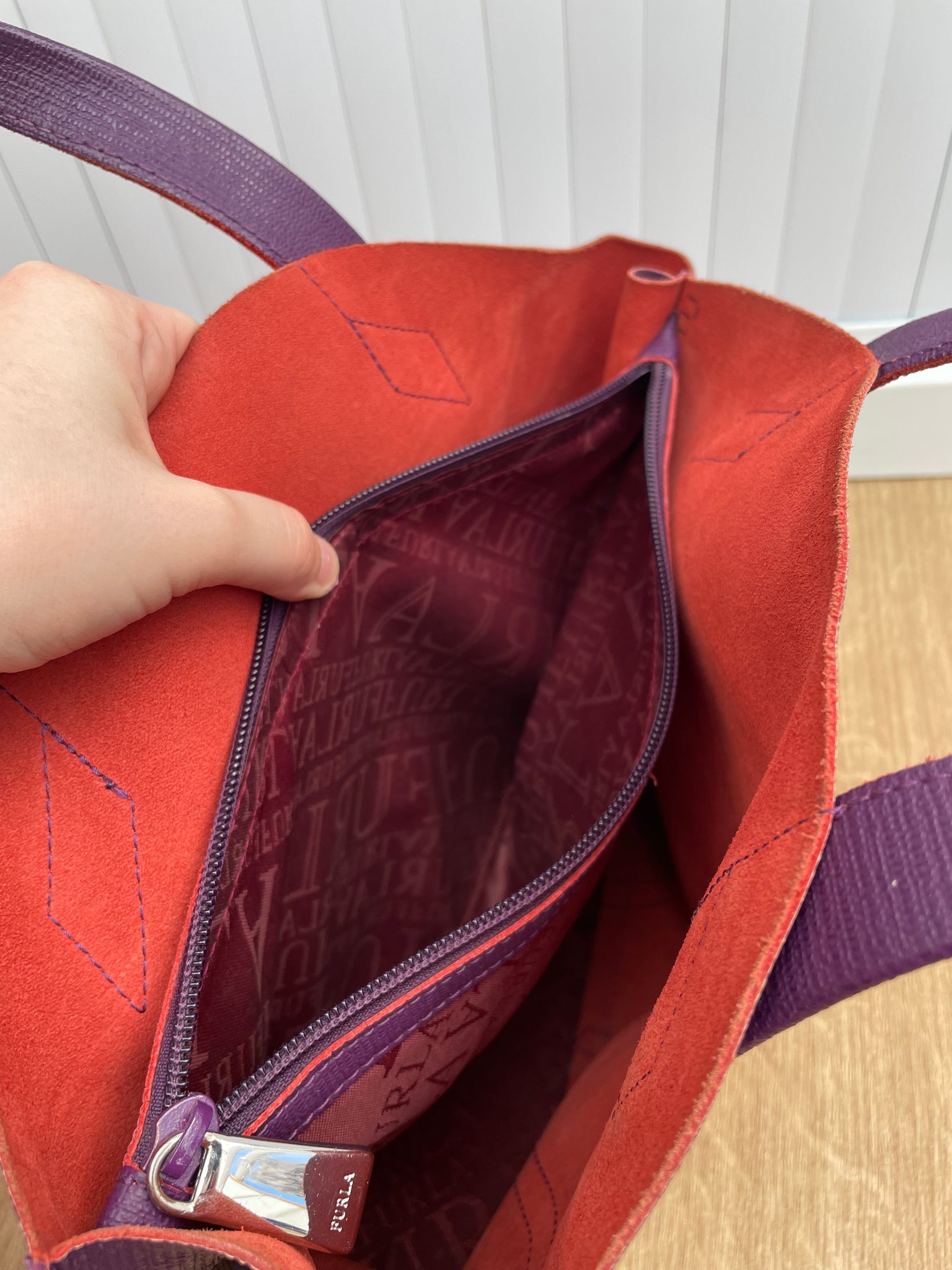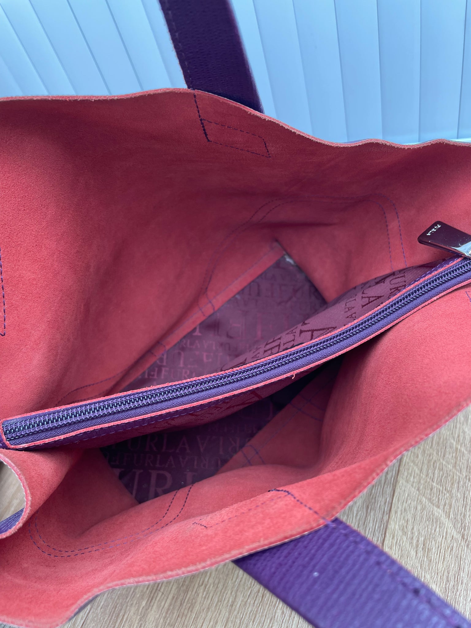 - Has a silver Furla tag on the outside