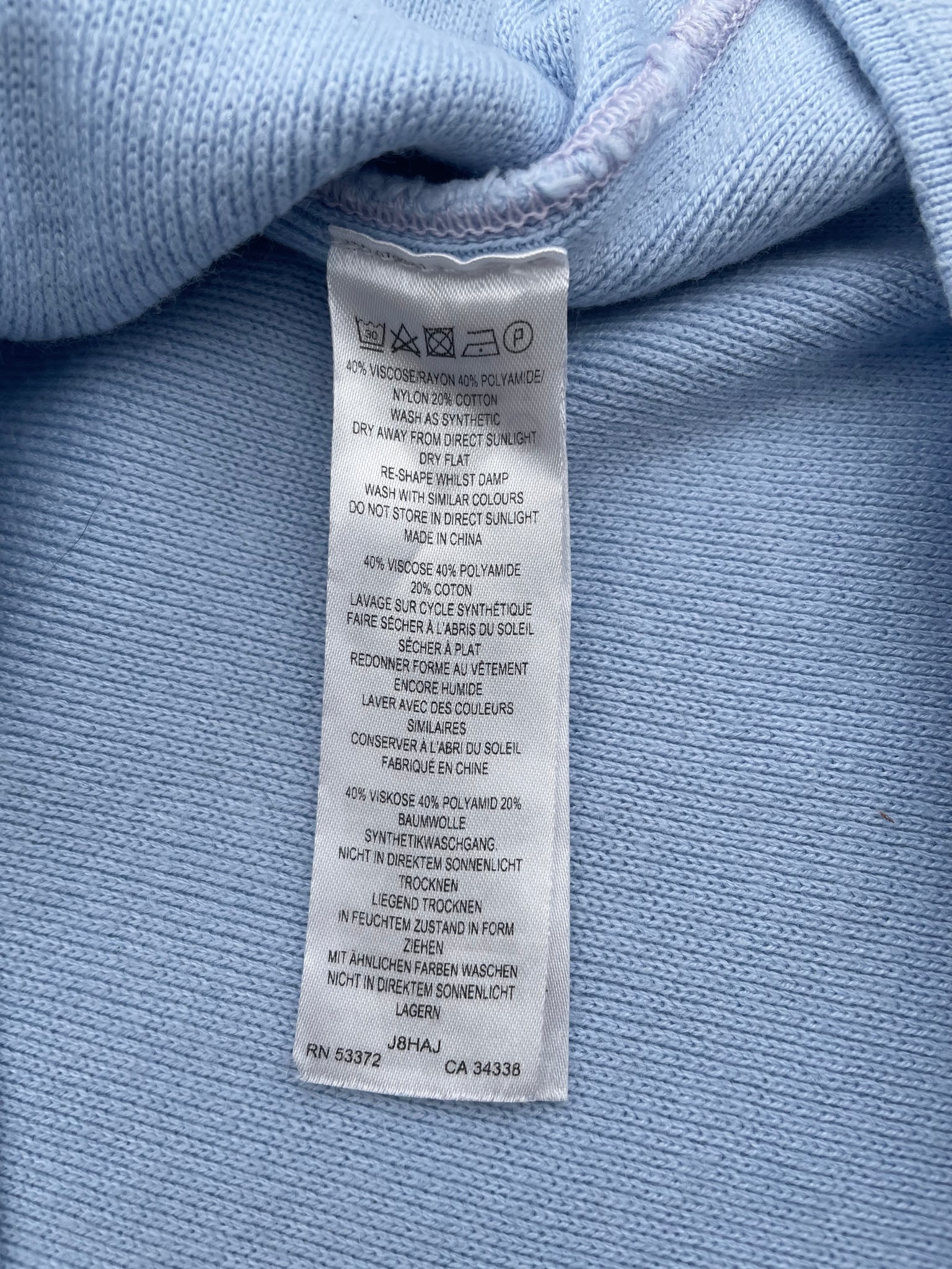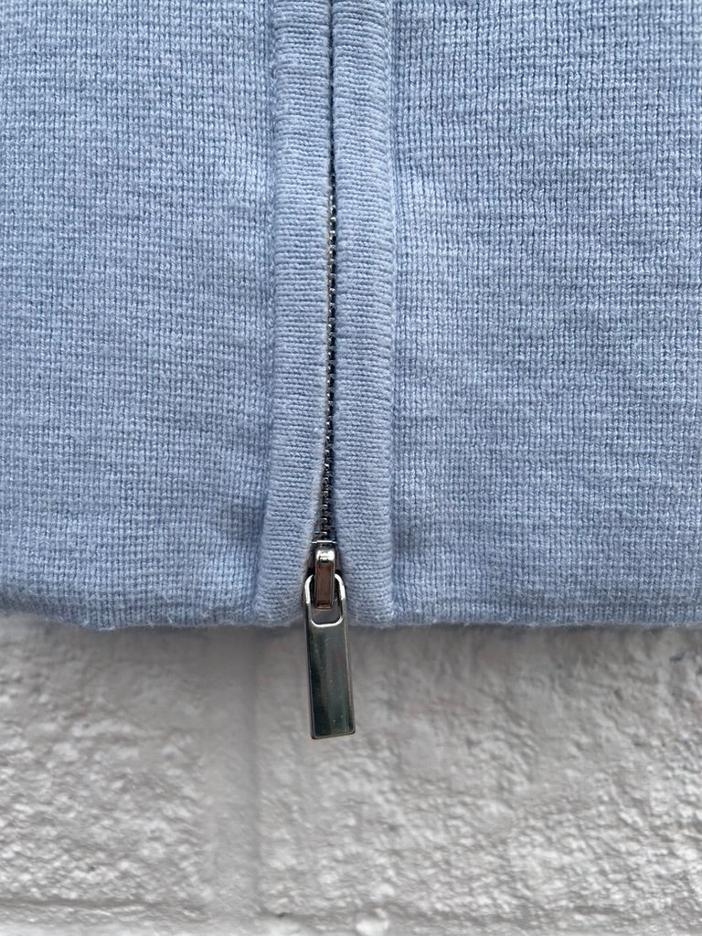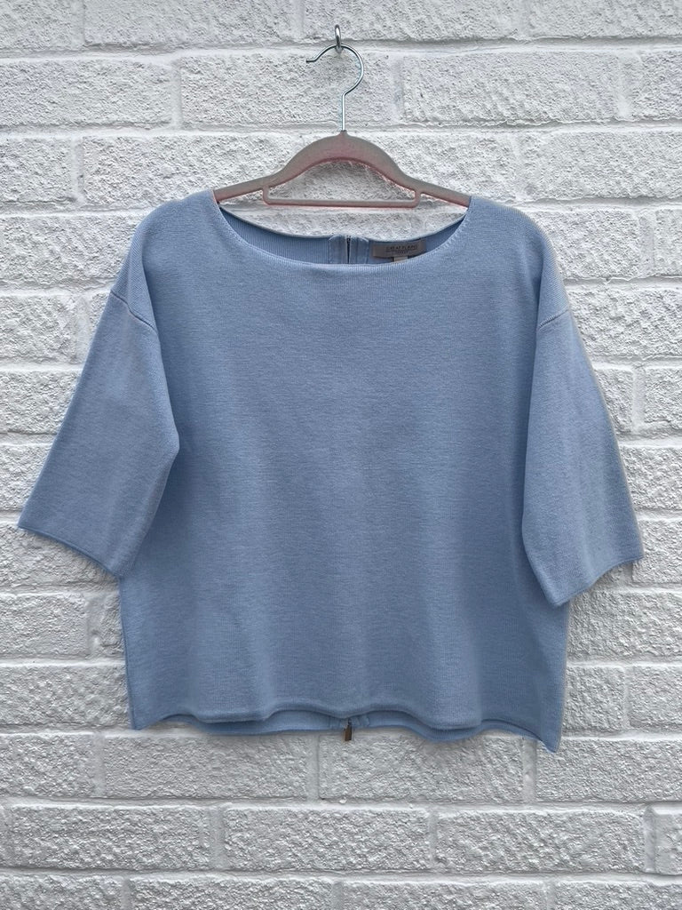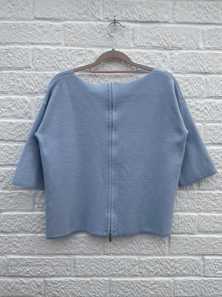 Light blue knit fabric with a stitch detail at the sleeves