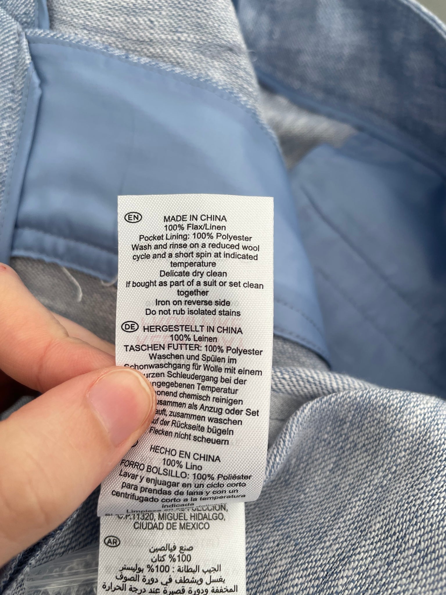 - Size UK 18 on the jacket and size UK 16 on the trousers
