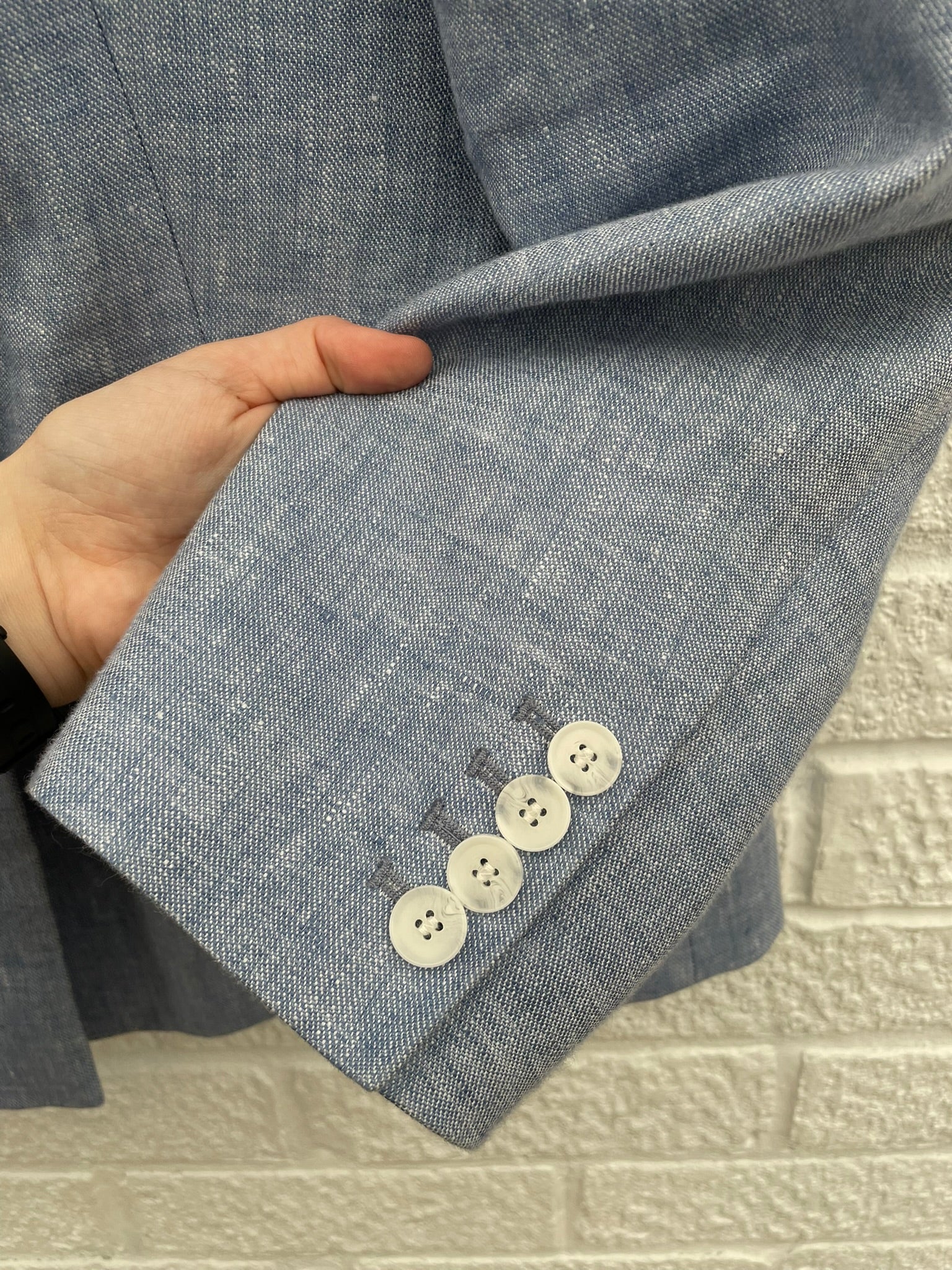 - A classic button up double breasted jacket and long sleeves with a pair of straight leg trousers