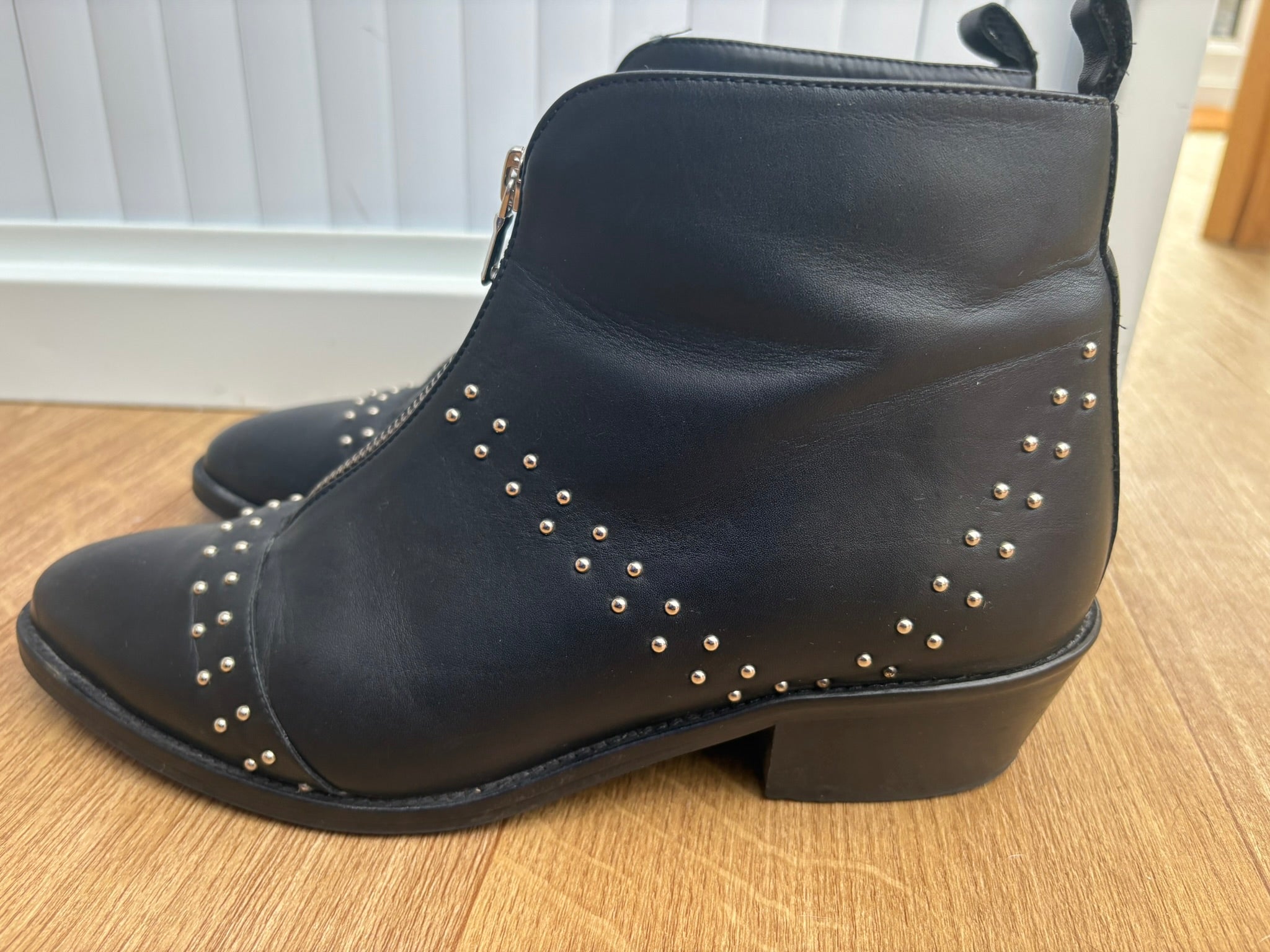 These black leather ankle boots from Hush are in very good preloved condition and features: