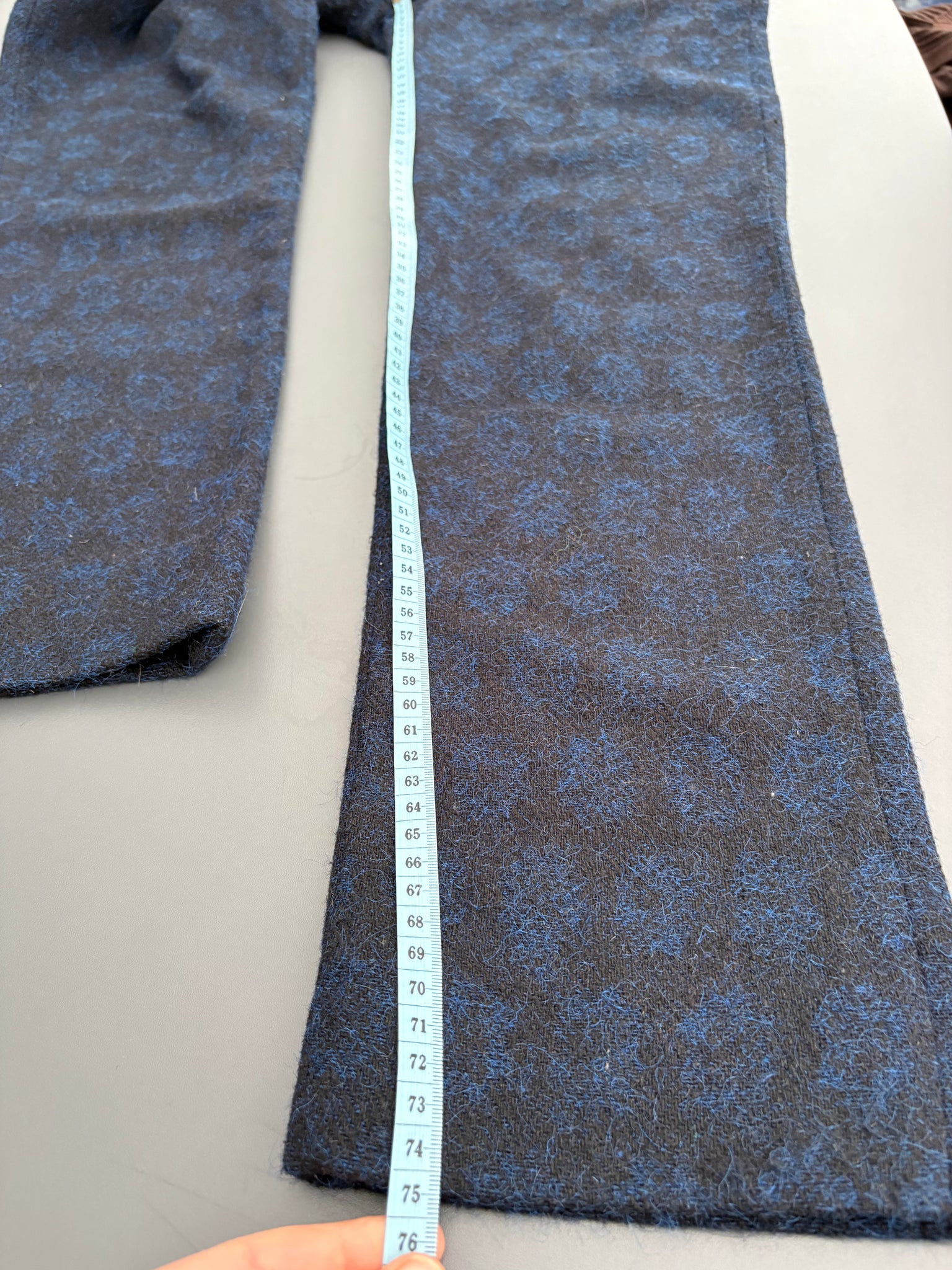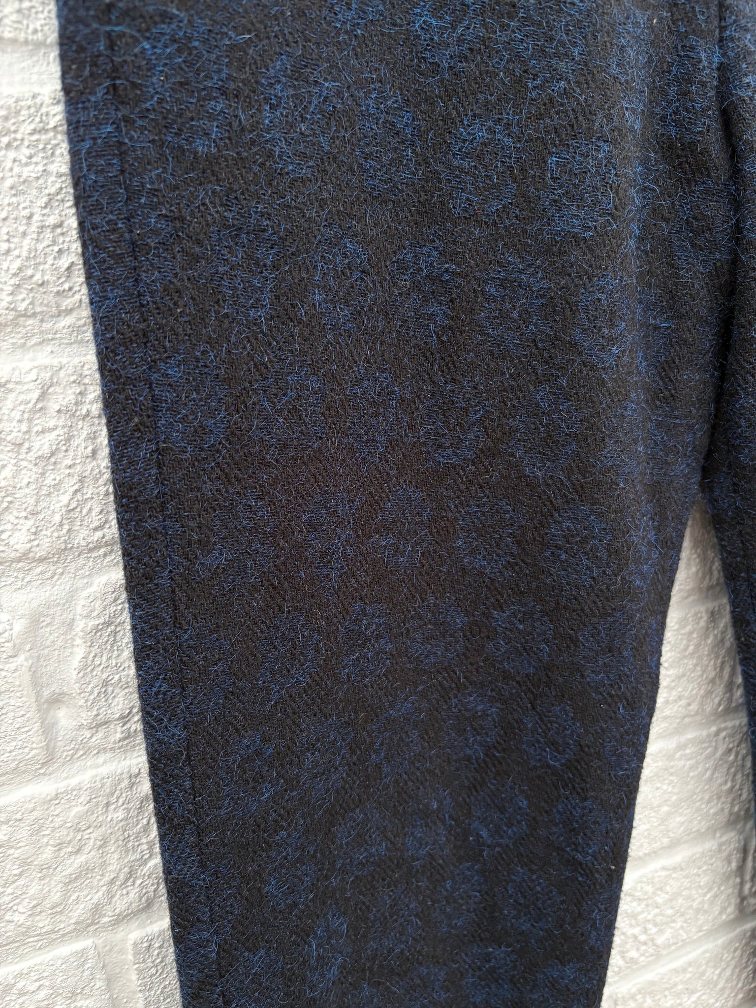 - There's no care and composition label but the fabric is a woven wool/ wool blend.