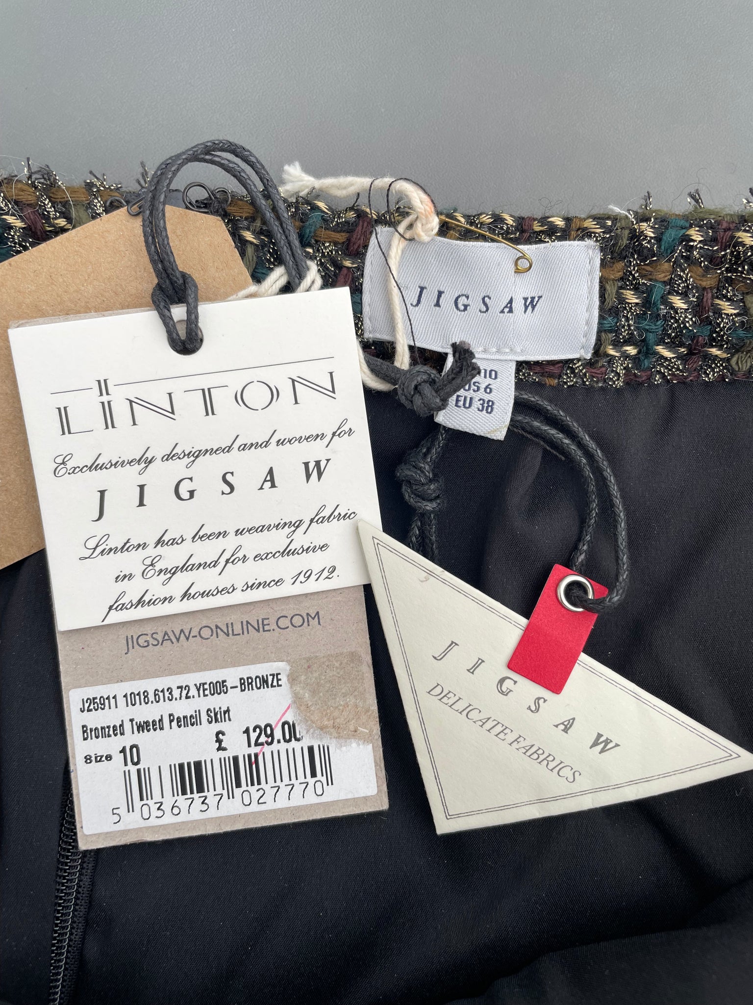 This super smart wool mix tweed skirt from Jigsaw is new with tags and features: