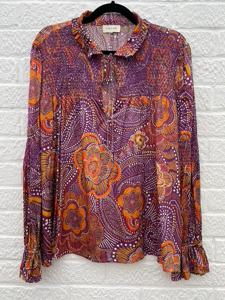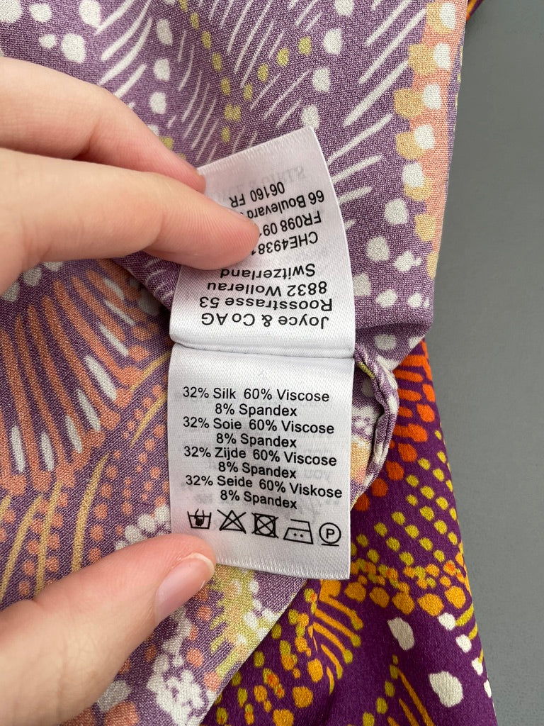 This funky silk mix top from Joyce & Girls is in excellent preloved condition and features: