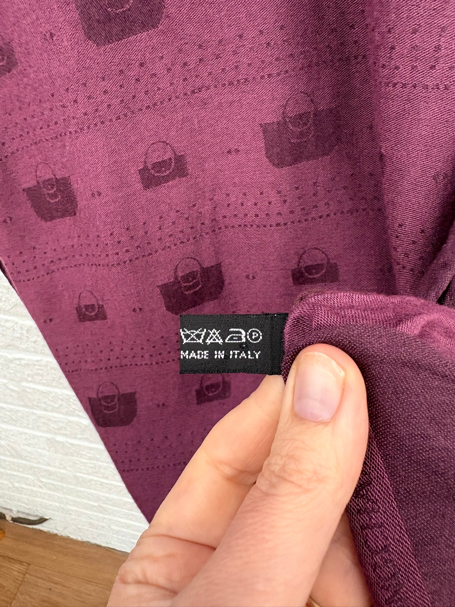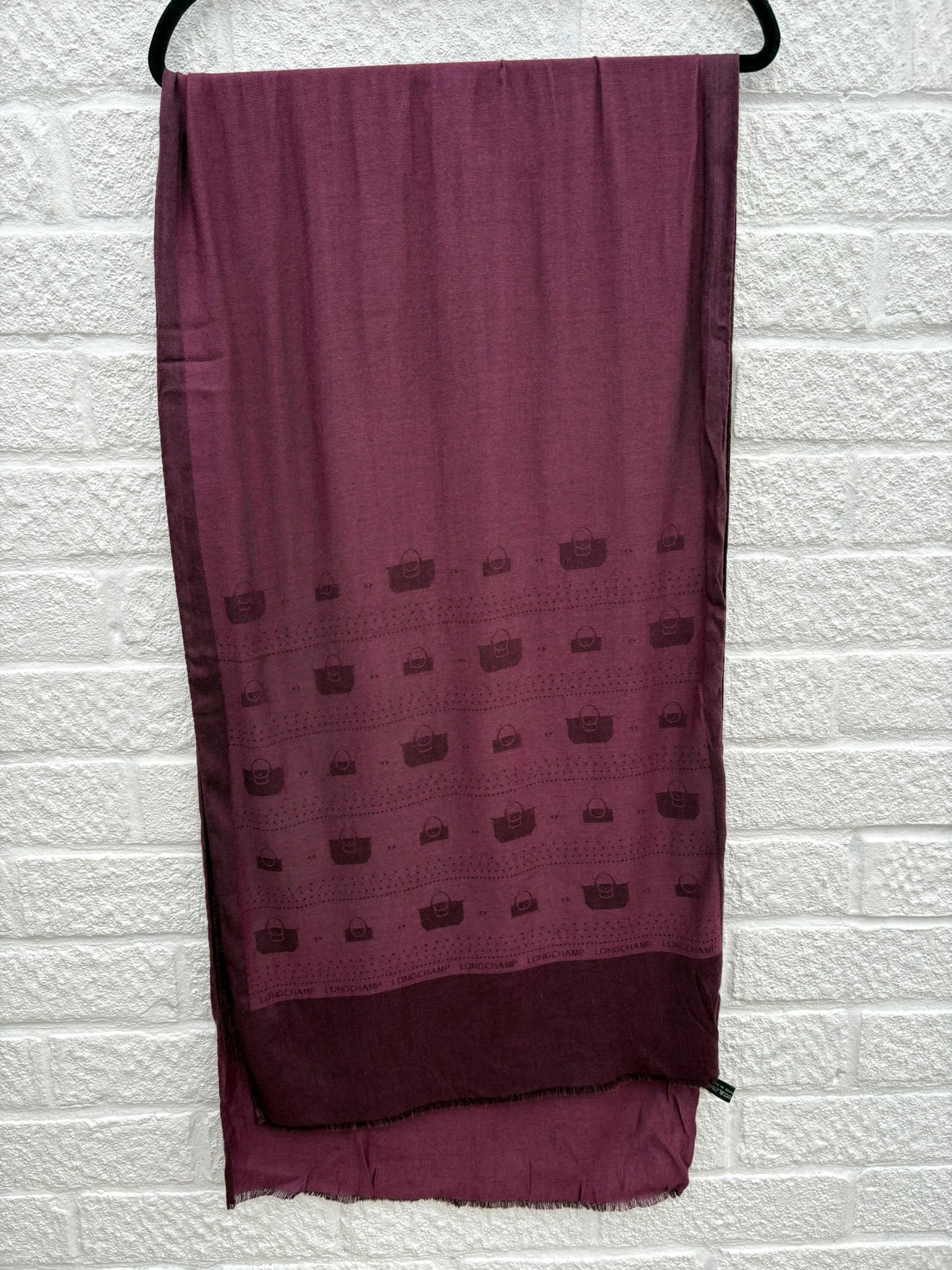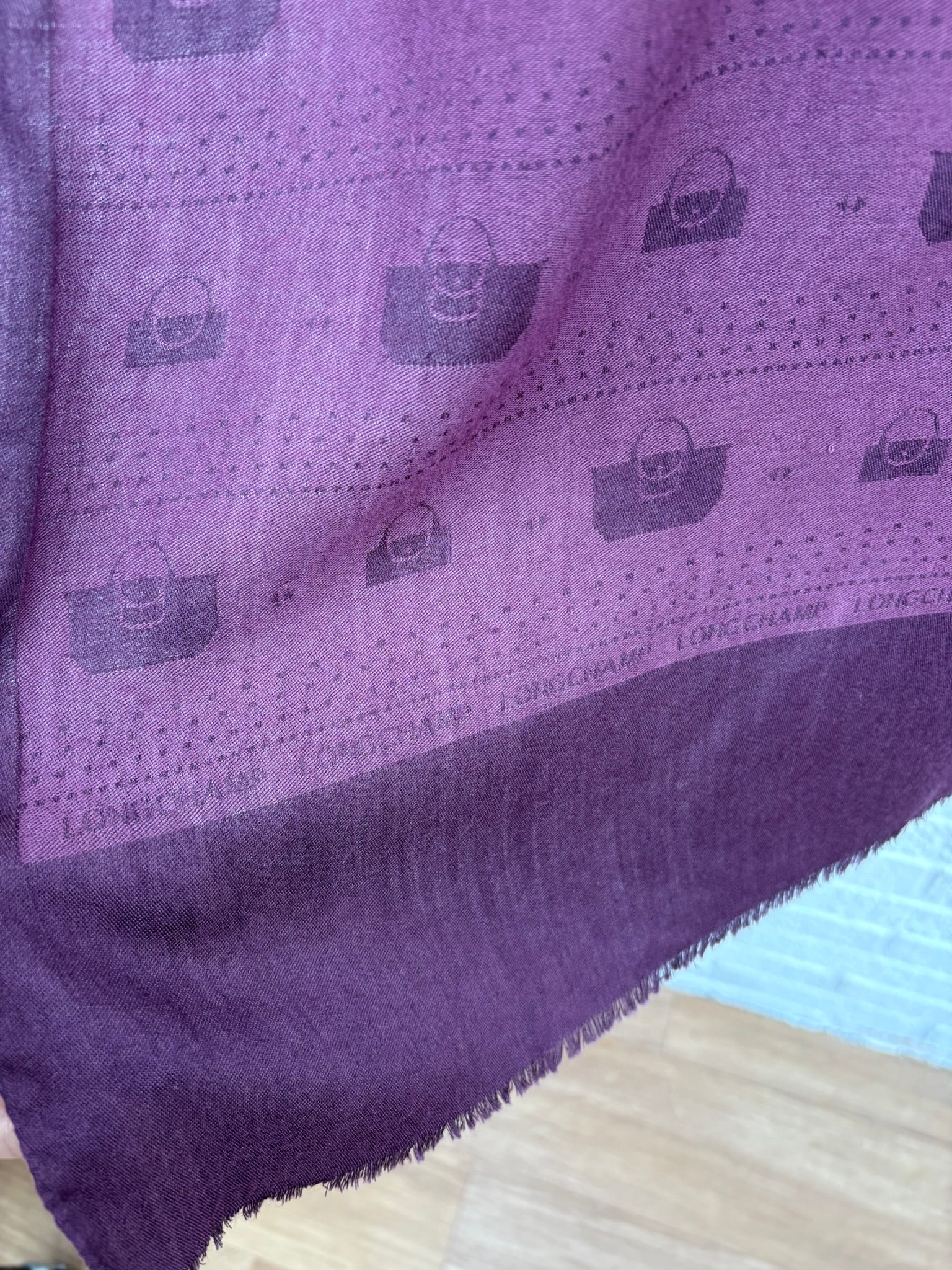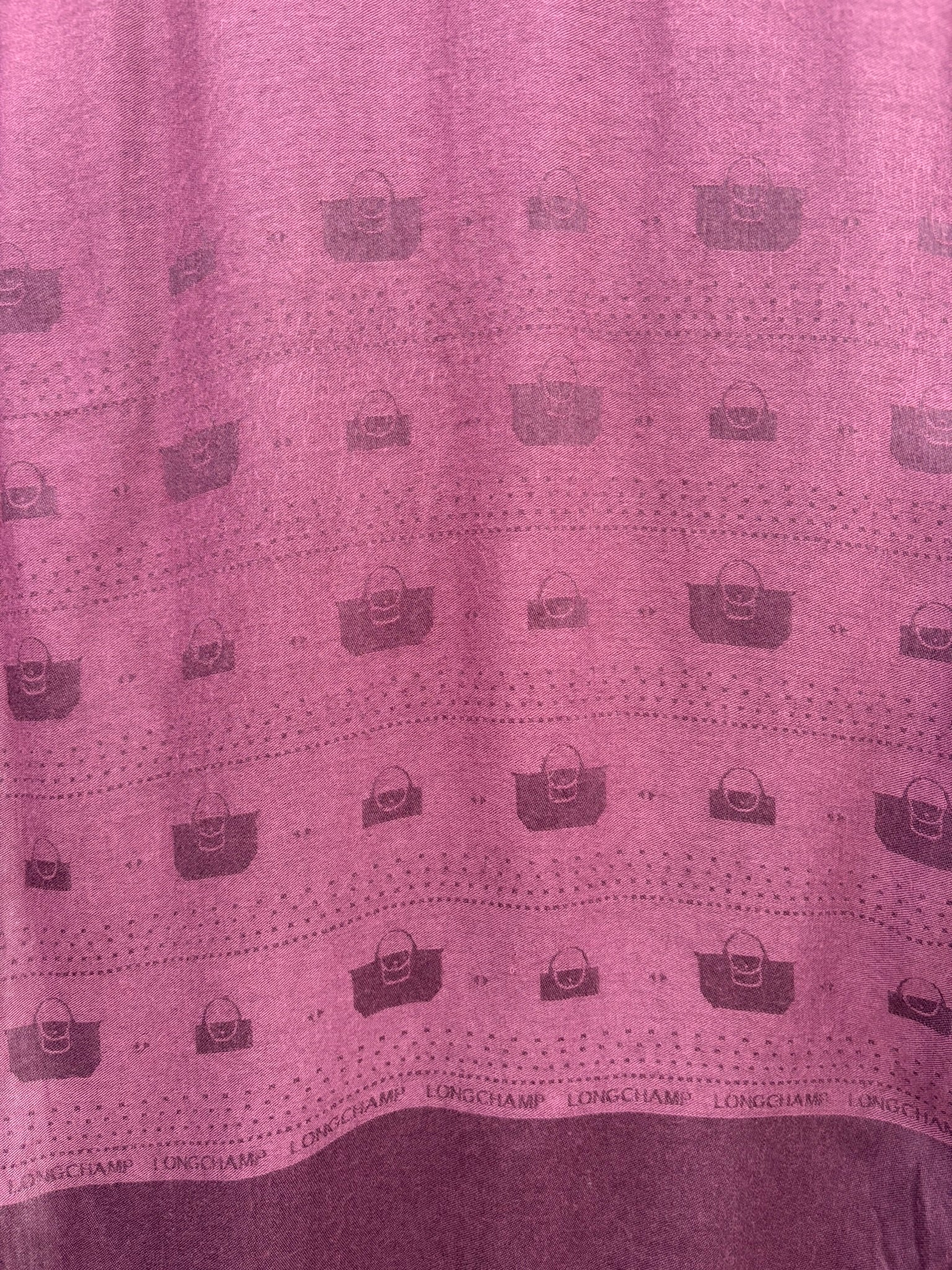 - Deep and soft pinky purple colour in a two tone design with a bag print and the Longchamp logo on it