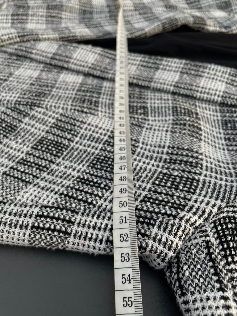 - Black and white check textured weave fabric