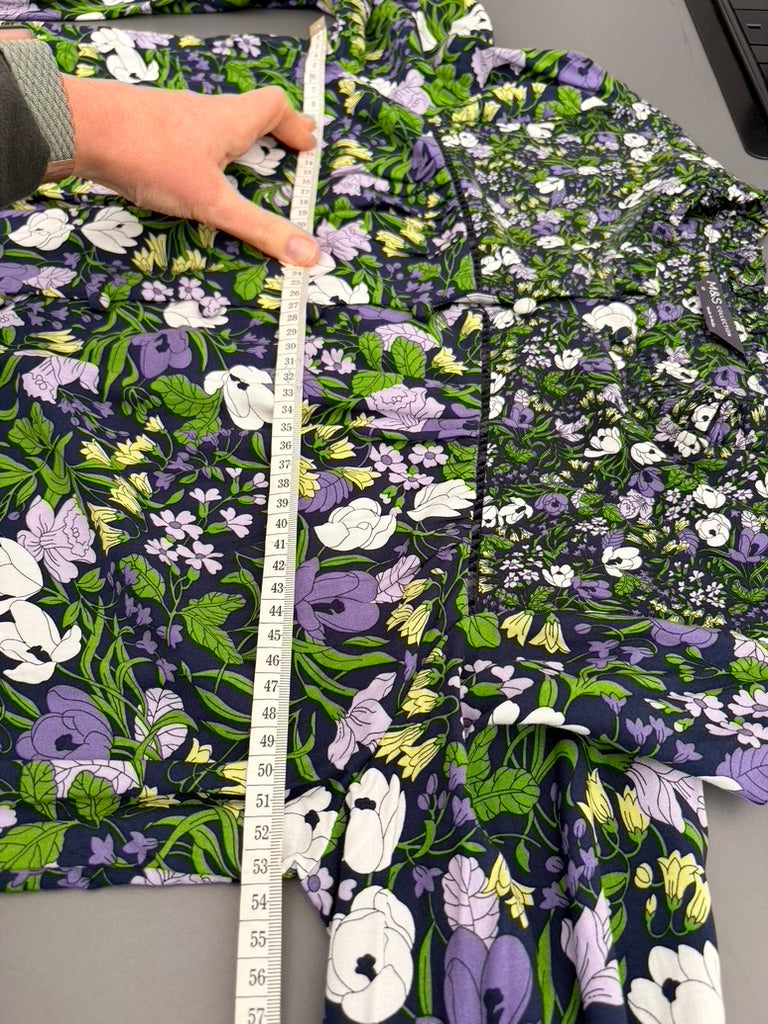 - Loose, floaty shape with a contrast smaller print panel around the shoulders