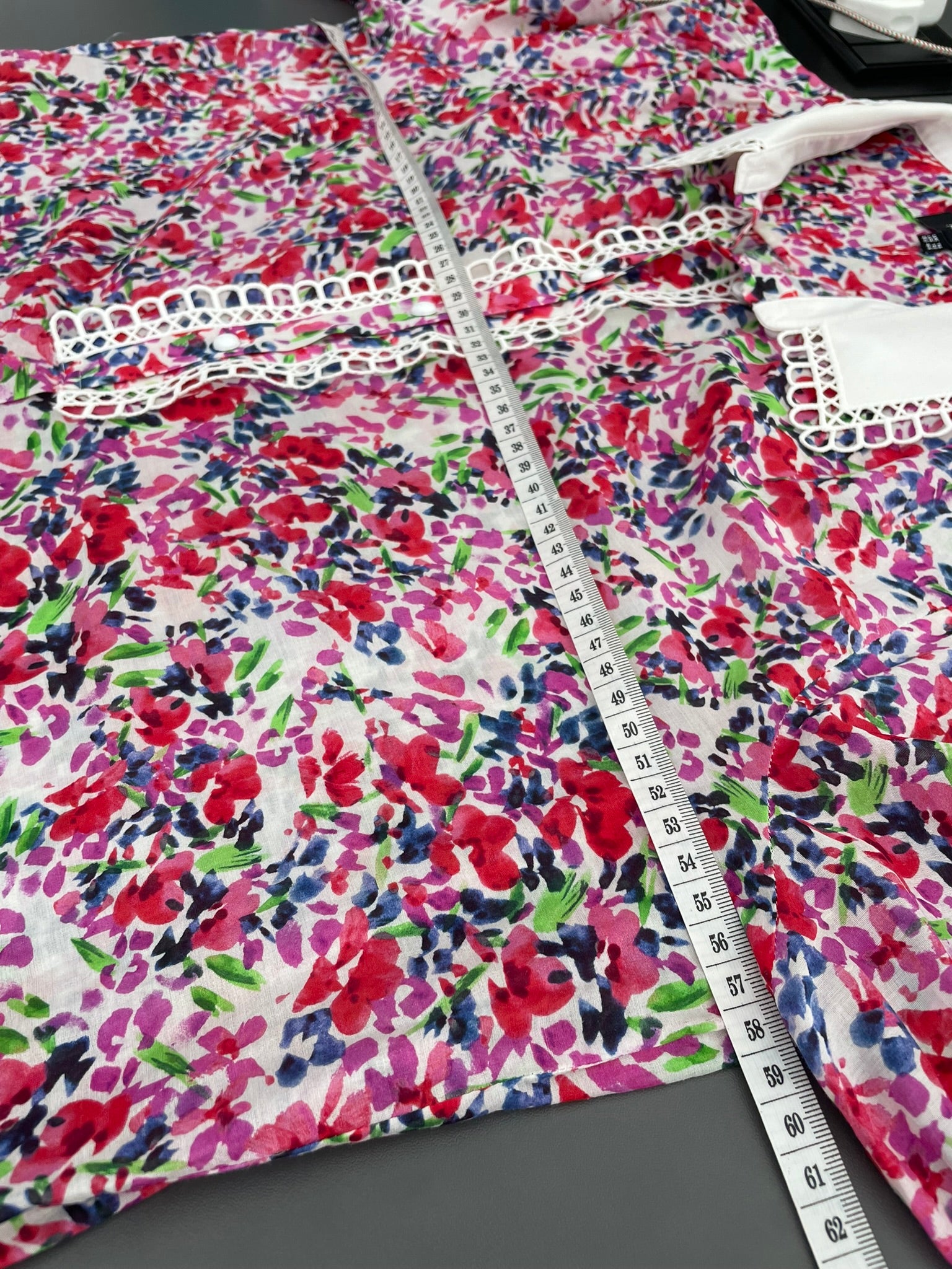 - Key measurements across the front: Bust: 58cm Length: 61cm