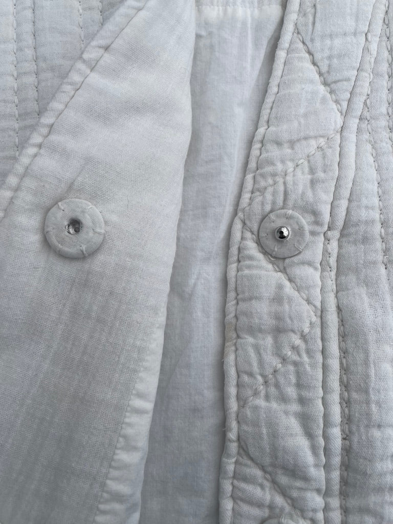 - There is a very small mark beside one of the poppers, but it can't be seen when the gilet is poppered up. Also a little patch of stitching is missing on the front, both are shown in the photos and reflected in the price.
