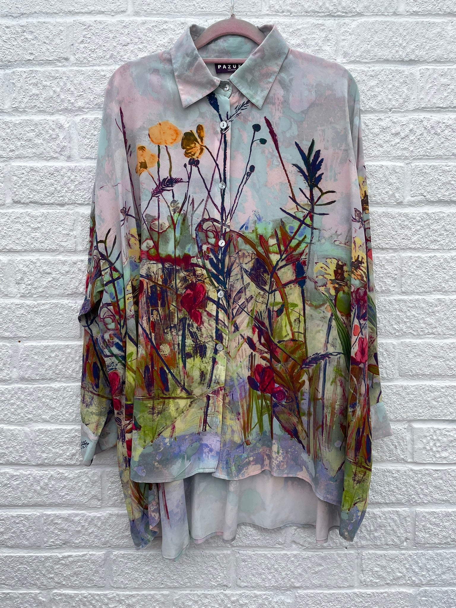 This beautiful silk shirt from Pazuki is in excellent preloved condition and features: