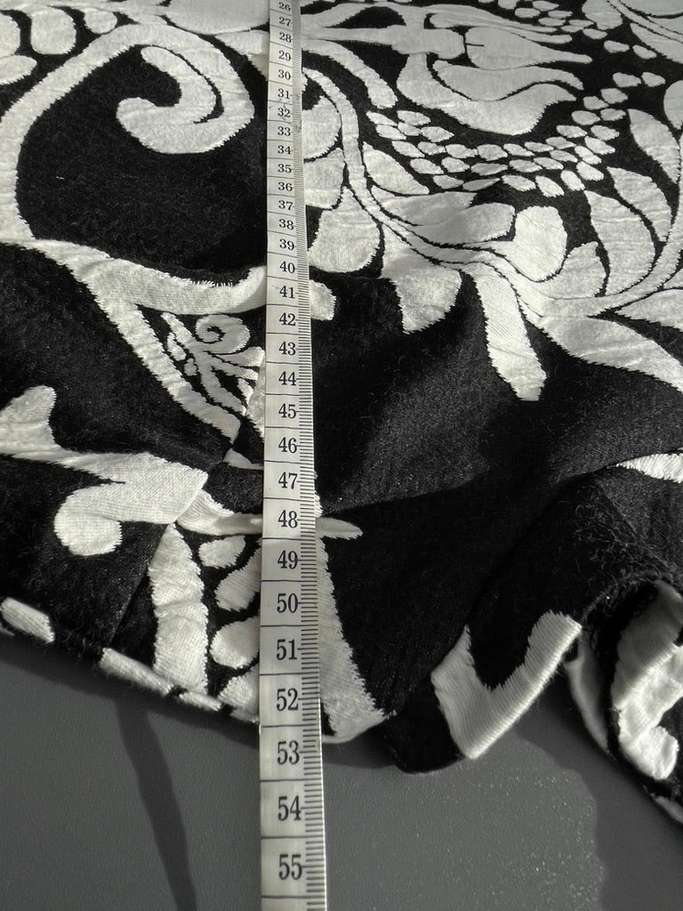 Stretch fabric with a black and white bold textured print all over