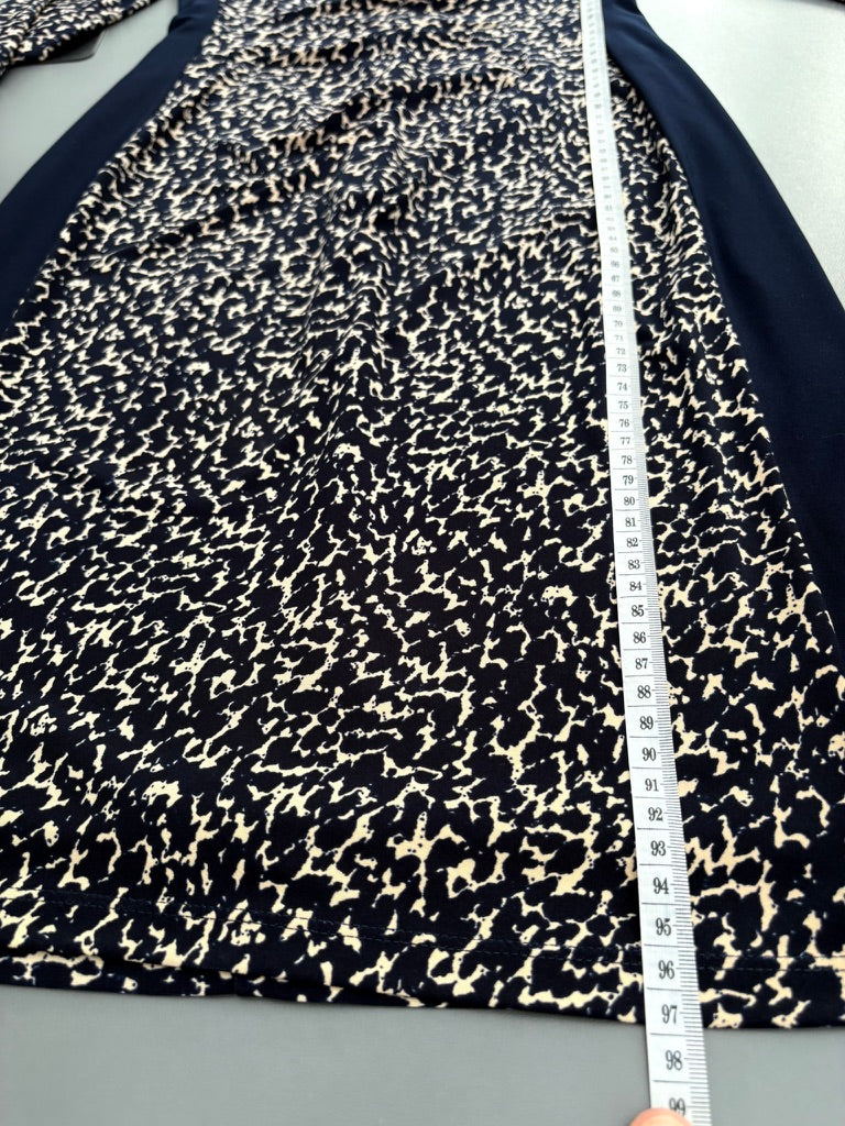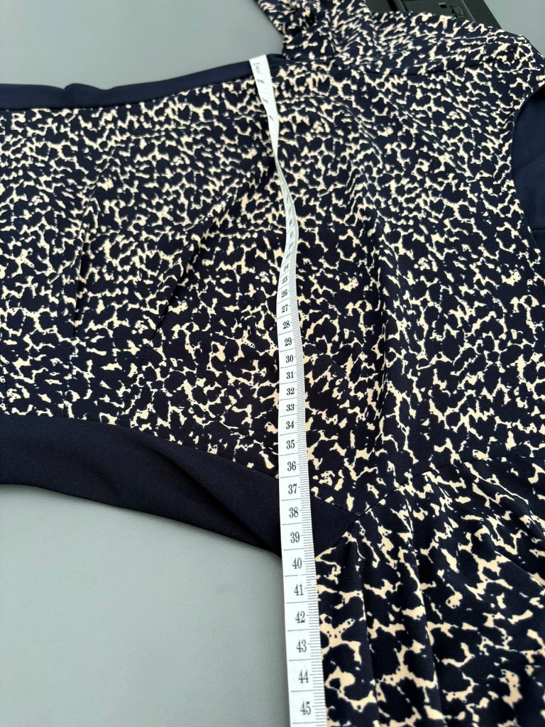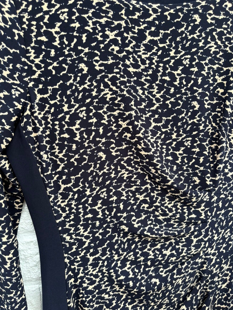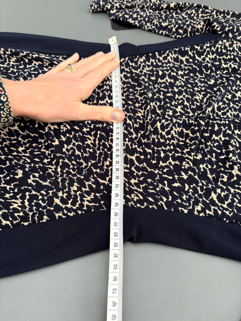 - Navy and tan stretch jersey fabric with plain navy panels down the sides