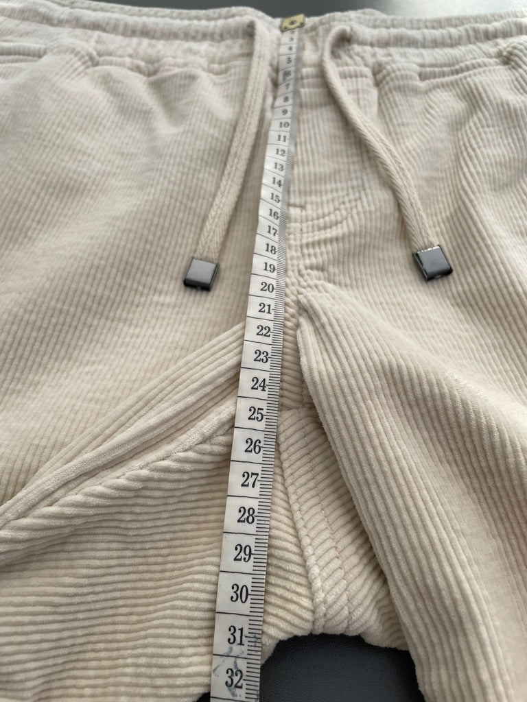 - Cream stretch corduroy fabric in a great weight