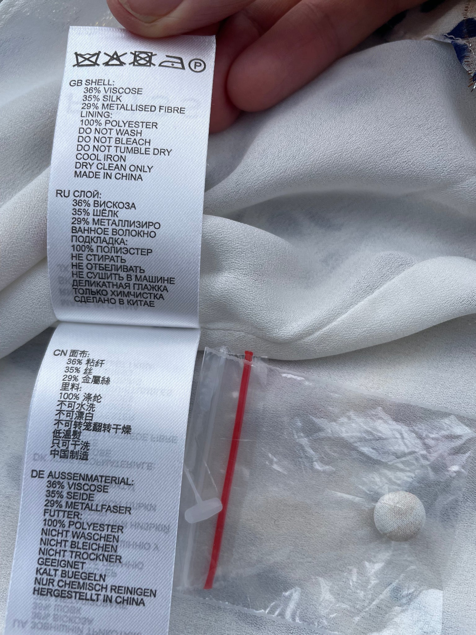 - 36% viscose/ 35% silk/ 29% metallised fiber mix fabric