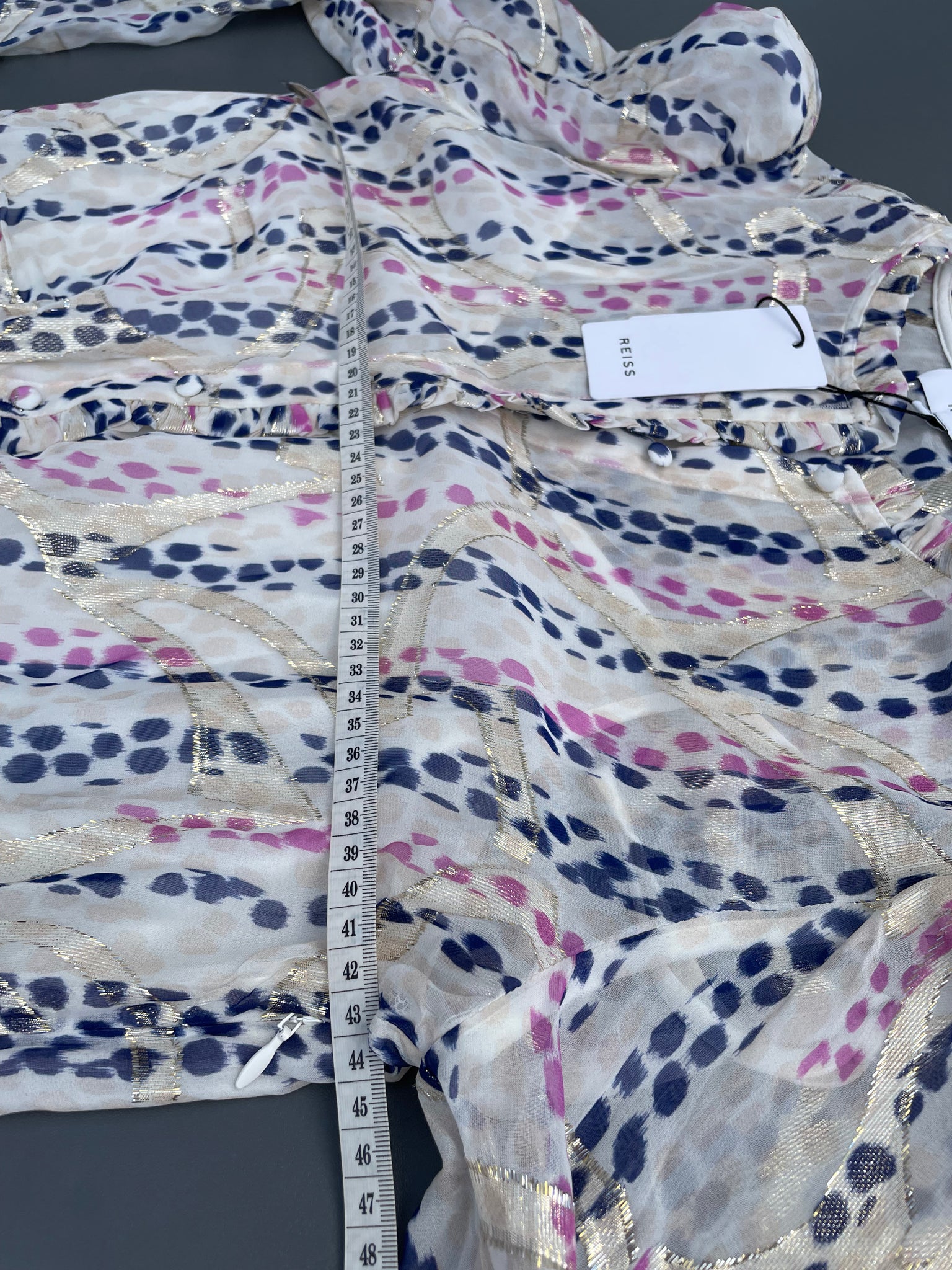 This beautiful Skyla metallic spot midi dress from Reiss is brand new with tags and features: