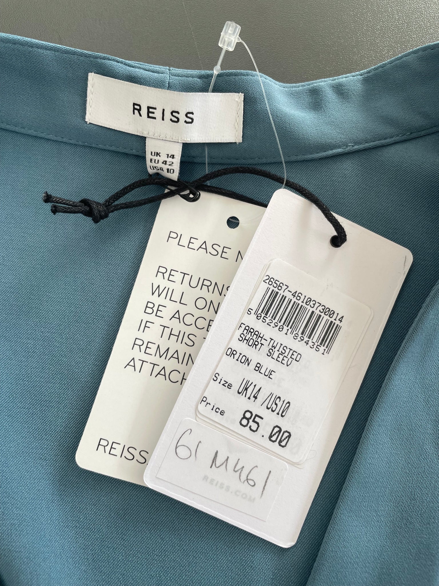 This dusky airforce blue Farah Twisted top from Reiss is brand new with tags and features: