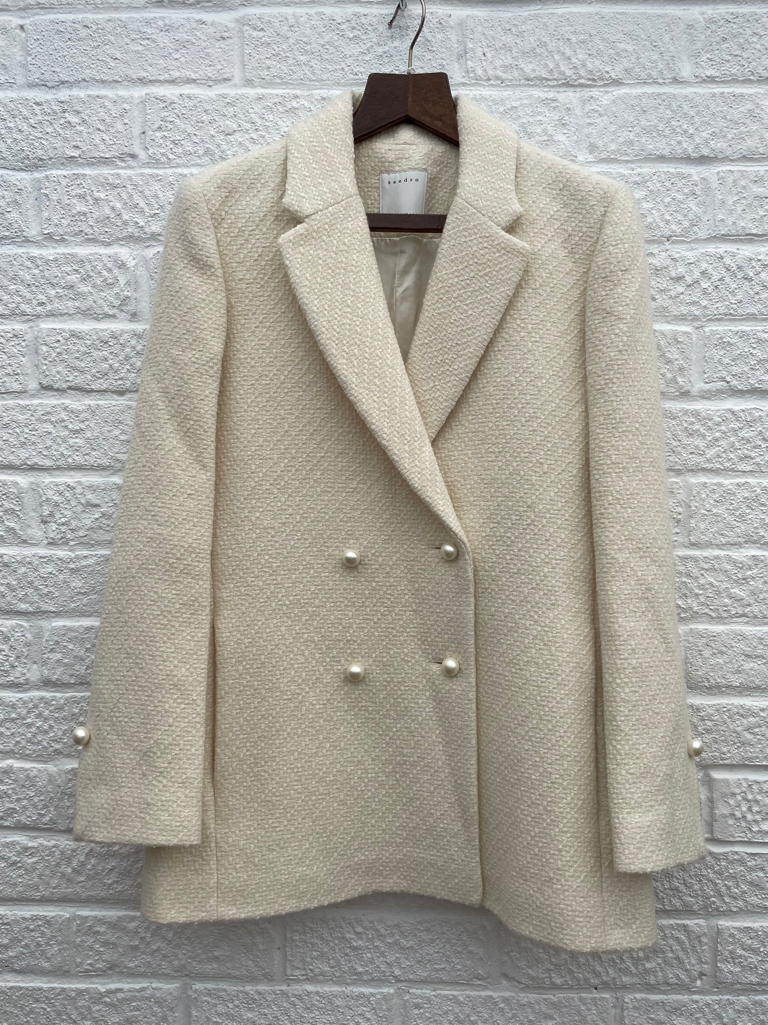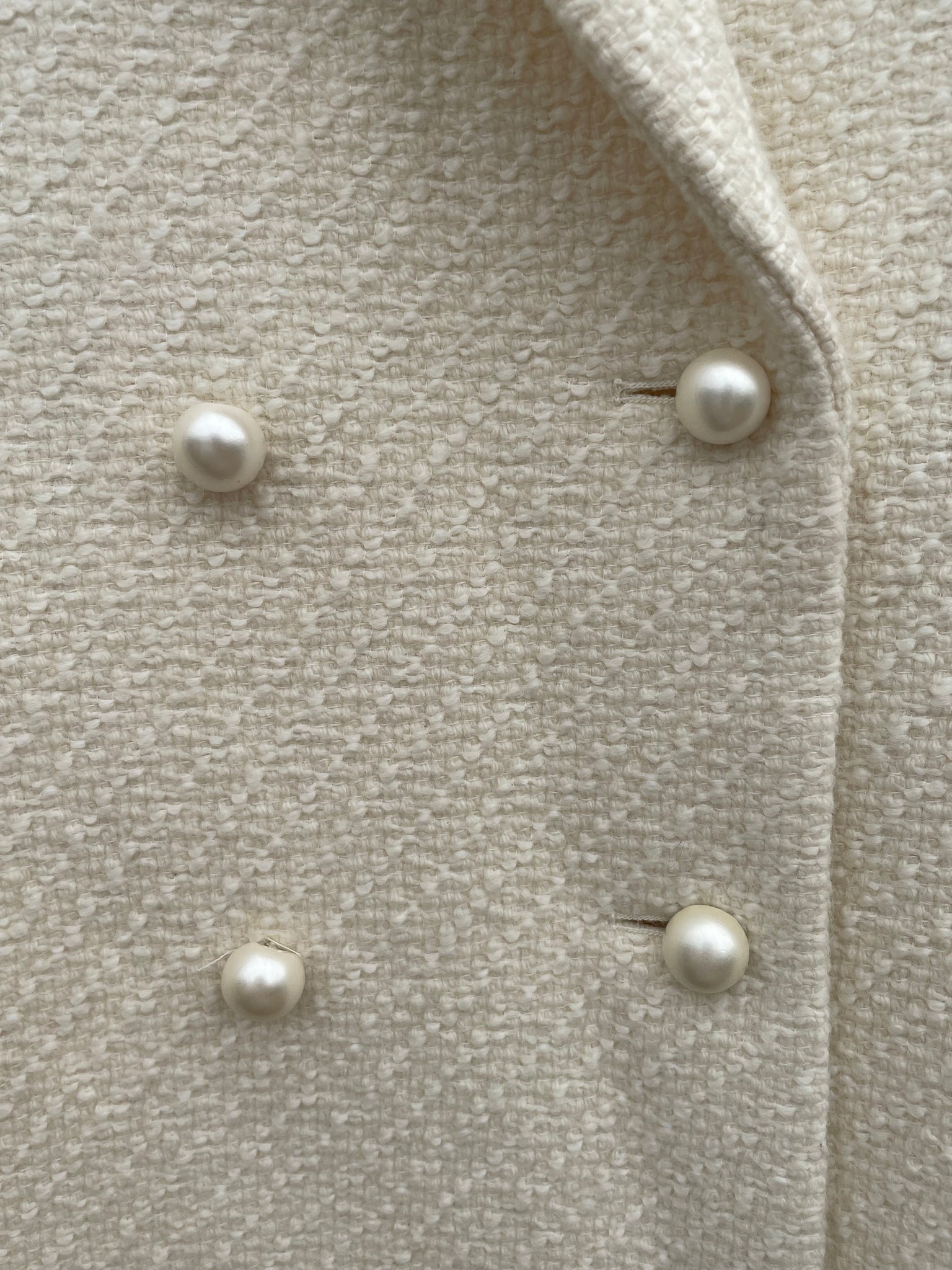 - Double breasted with lovely pearl buttons and pear buttons on the cuffs