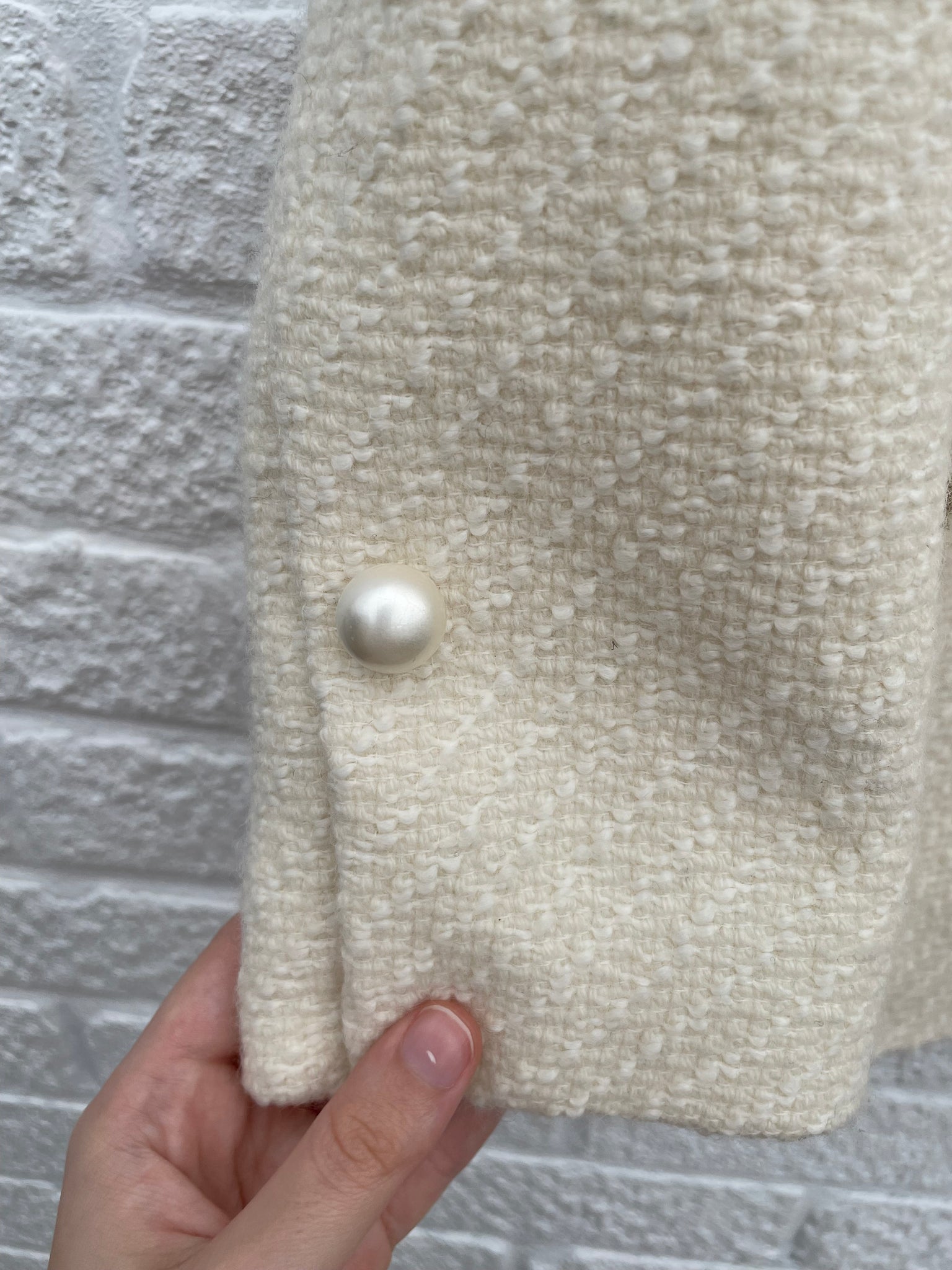 This stunning cream wool mix jacket from Sandro Paris is in immaculate preloved condition and features: