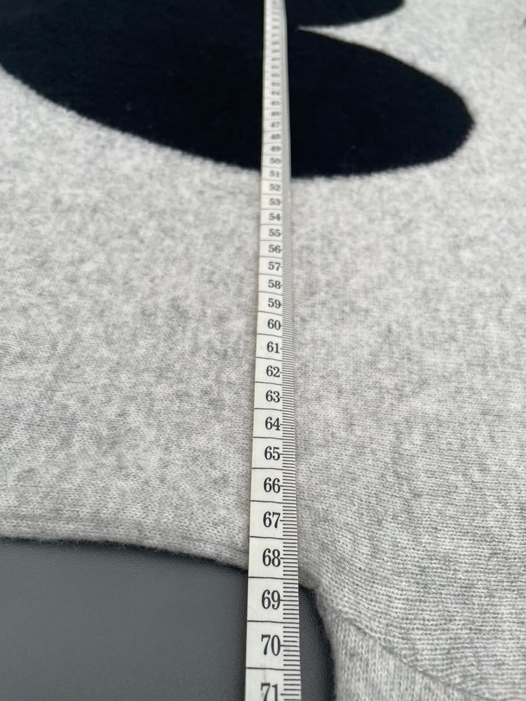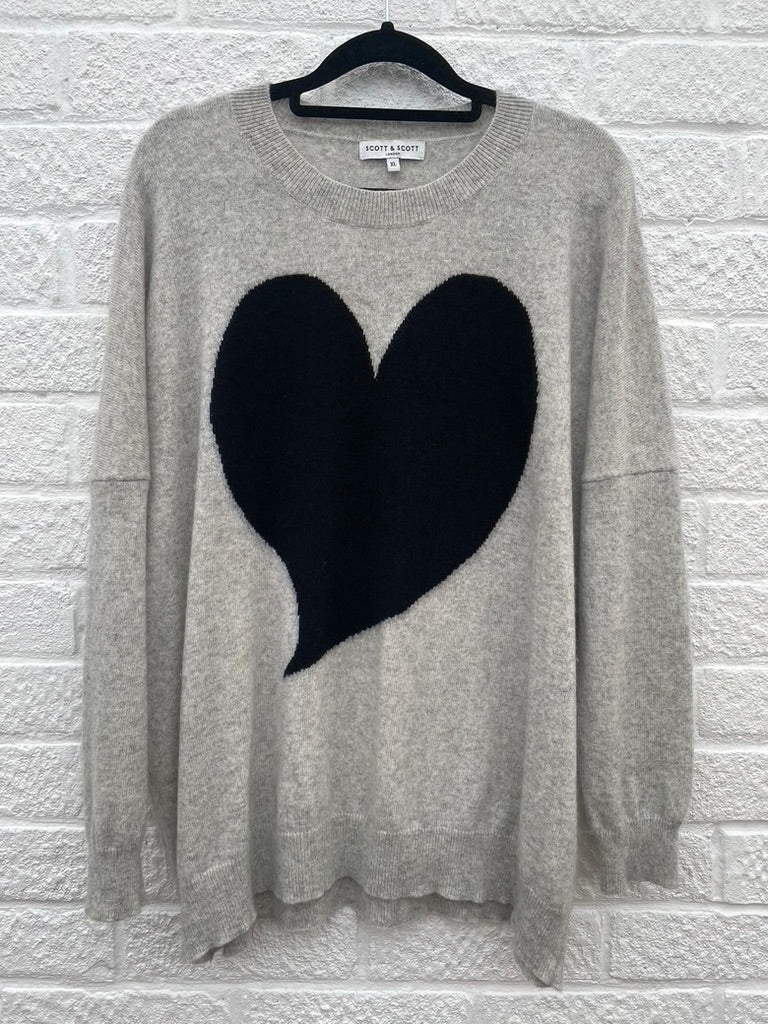 Light grey cashmere knit fabric with a black heart knitted on the front