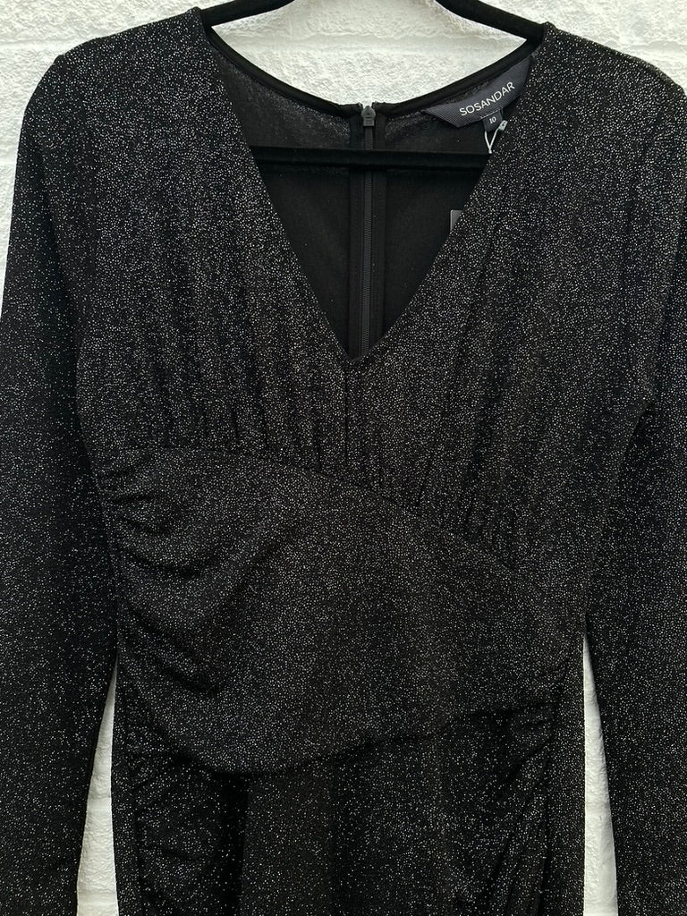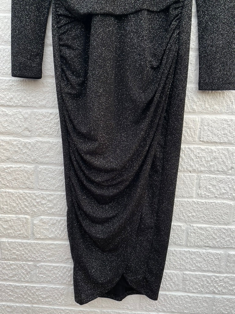 - Fitted to the waist with ruching across the waist and a wrap shape to the skirt