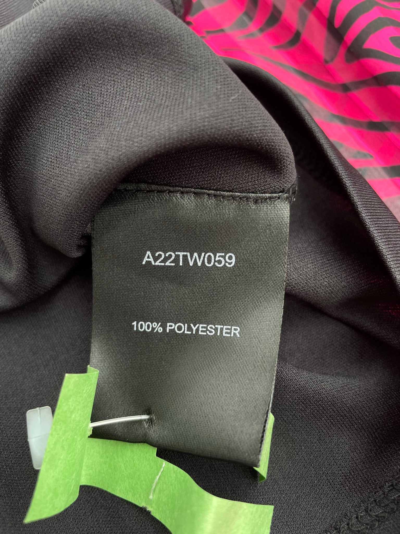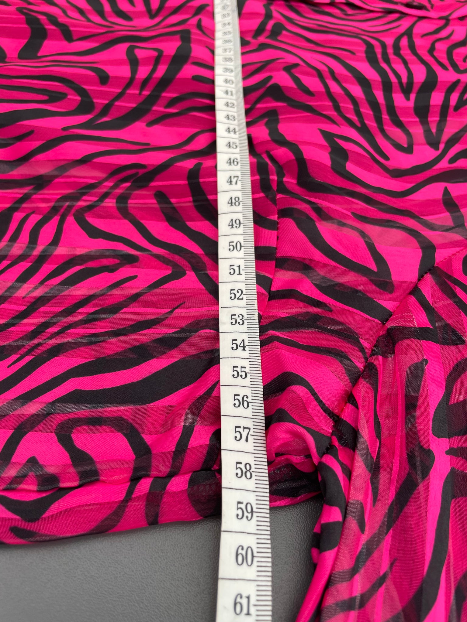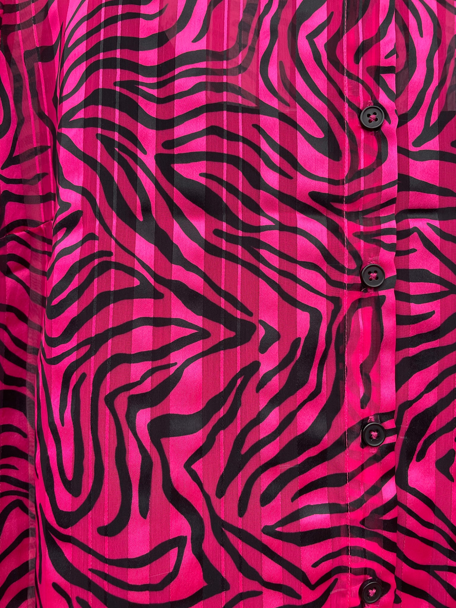 Bright pink sheer fabric with a stripe and a black zebra print design all over