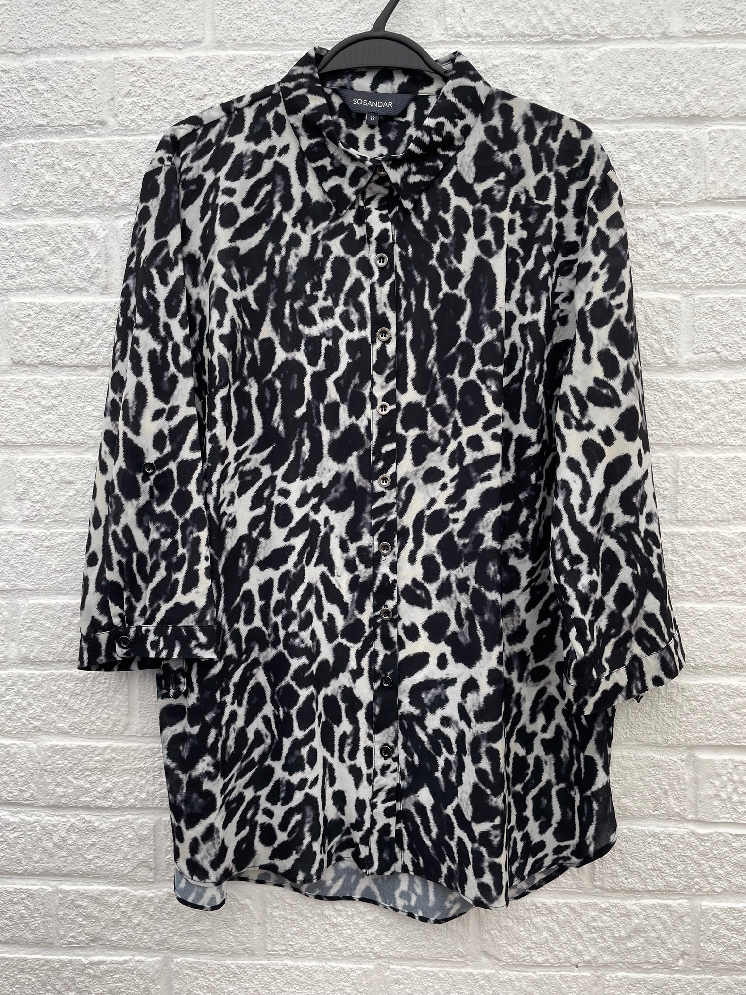 This black patterned shirt from Sosander is in excellent preloved condition and features: