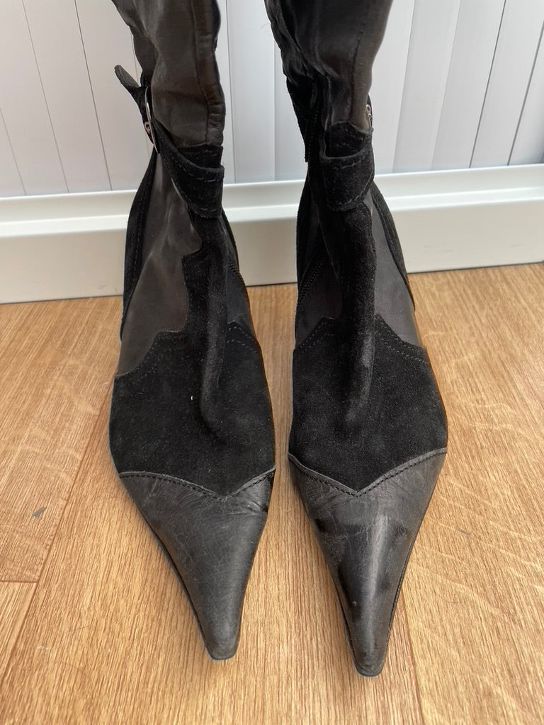 Pointed toe with a buckle detail around the ankle and a lovely cowboy style design on the boot