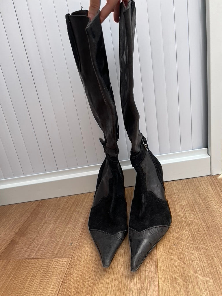 - Knee length boot with a high heel