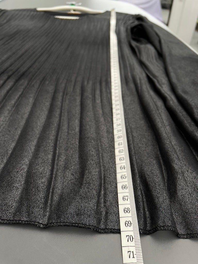 - Flared shape with pleats all over the front of the top and larger pleats towards the hem