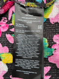 Black floaty fabric with a bright colourful floral print