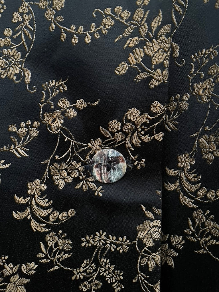 - Very dark brown fabric with a gold brocade type floral design fabric - fabric almost looks black but the label says it is brown!