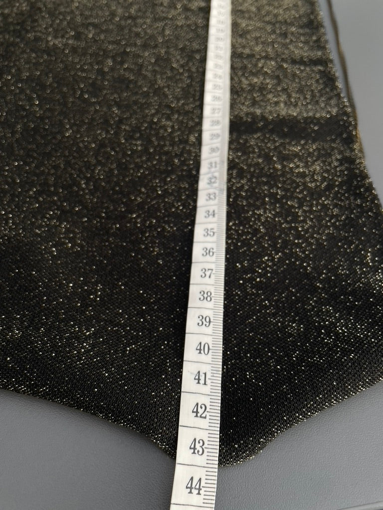 Deep gold/ bronze sparkly stretch fabric on a black background